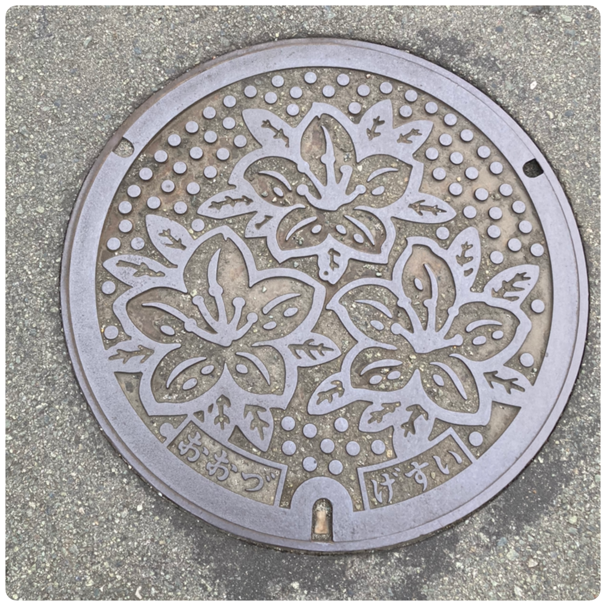 目に飛び込んできたのは、大津町の花である美しいツツジが描かれた、汚水管の蓋なんです🌼💠!